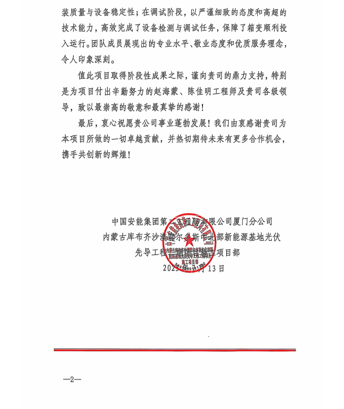 ×ðÁú¹Ù·½Æ½Ì¨Éî¶È²Î½¨µÚÆß±ê¶Î100ÍòǧÍß¹â·üÏîÄ¿£¬ÎªÆäÌṩ152̨¹â·üÉýѹÏä±ä²úÆ·²¢ÊµÏÖÁã¹ÊÕÏÎȹÌÔËÐУ¬ÎªÖйú¿Æ¼¼ÖÎɳ¹¥¼áÕ½Õù×¢ÈëÂÌÉ«¶¯ÄÜ¡£